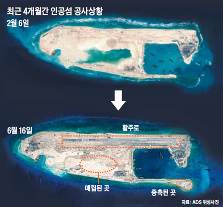 중국은 이런씩으로 해서 섬 만들고, 공항, 건설하고 무장하는등 행위를 지속적으로 동남아에 했음.