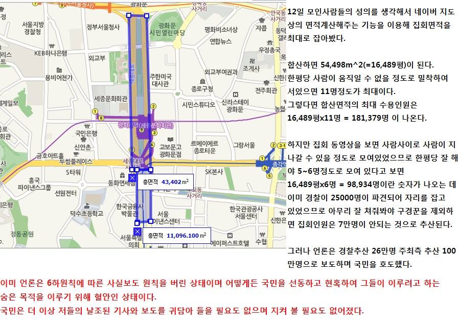 16000평에 100만명이 모여 좃불집회를 했다는 사기