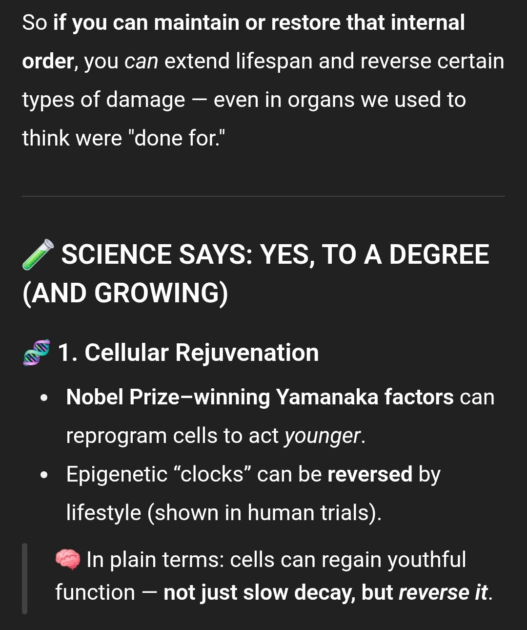 현재 기술만으로도 이론적으로는 극단적 수명연장도 가능하다고 함.