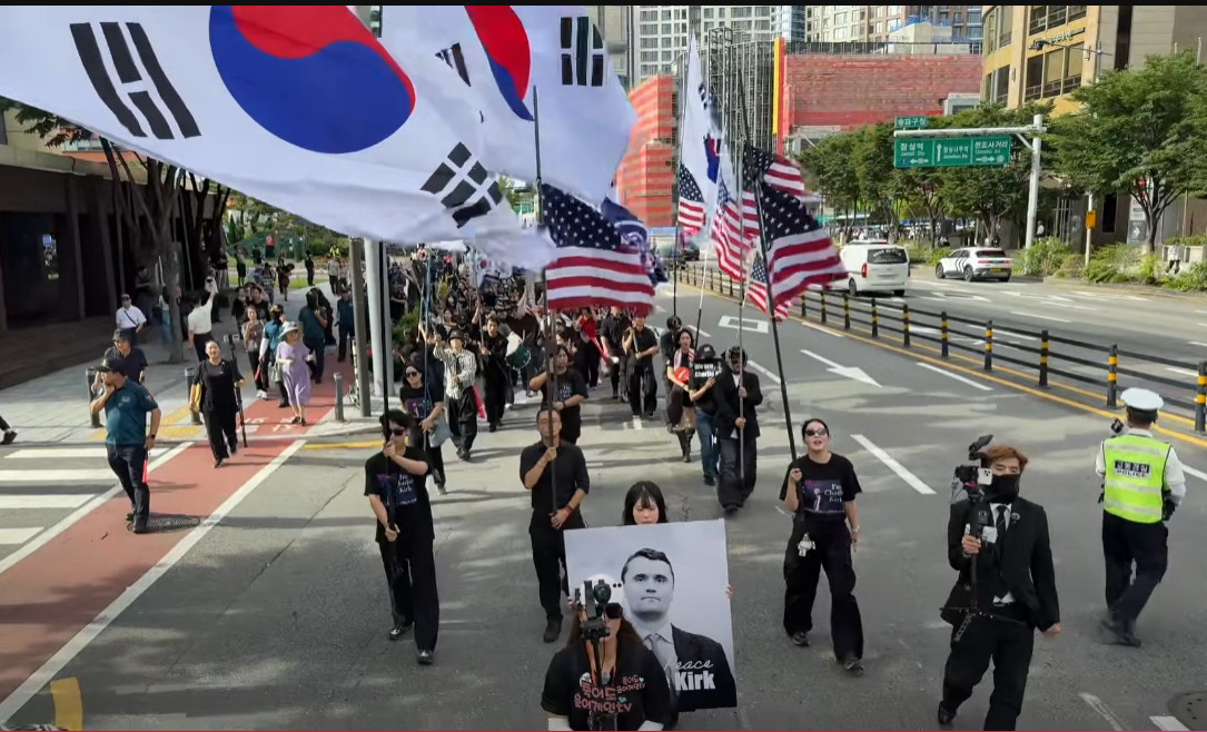 젊은 청년들 단체로 들고 일어나 찰리 커크 추모중