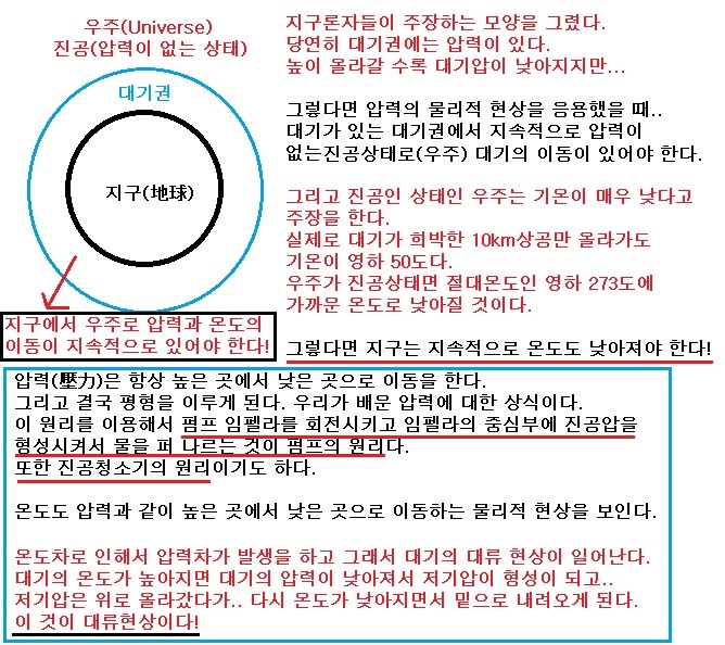 우주와 지구로 형성된 열린 계면 대기압은 0에 수렴하게 된다!
