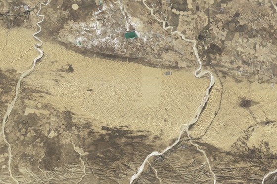 미 항공우주국(NASA)은 지난 30일(현지시각) 중국 네이멍구(內蒙古)자치구 쿠부치 사막에 건설 중인 중국의 태양광 발전소를 위성으로 촬영한 이미지를 공개했다.