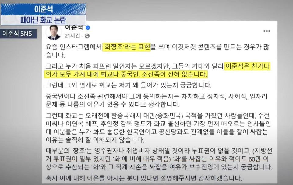 화교논란에 반응 씹 ㅋㅋㅋㅋㅋ