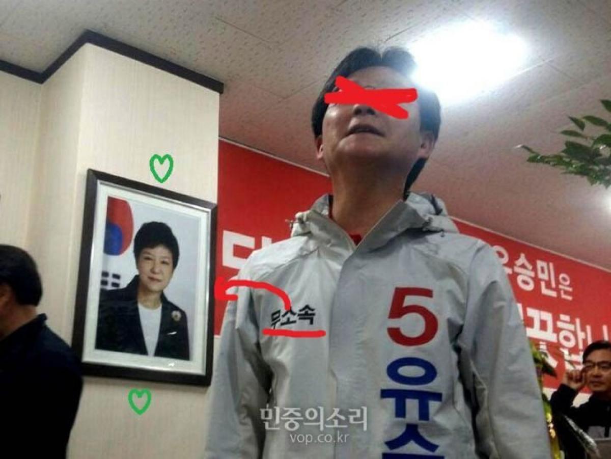 자신이 배신했던 박근혜대통령의 사진을 걸고 선거운동을 함. ㅋㅋ