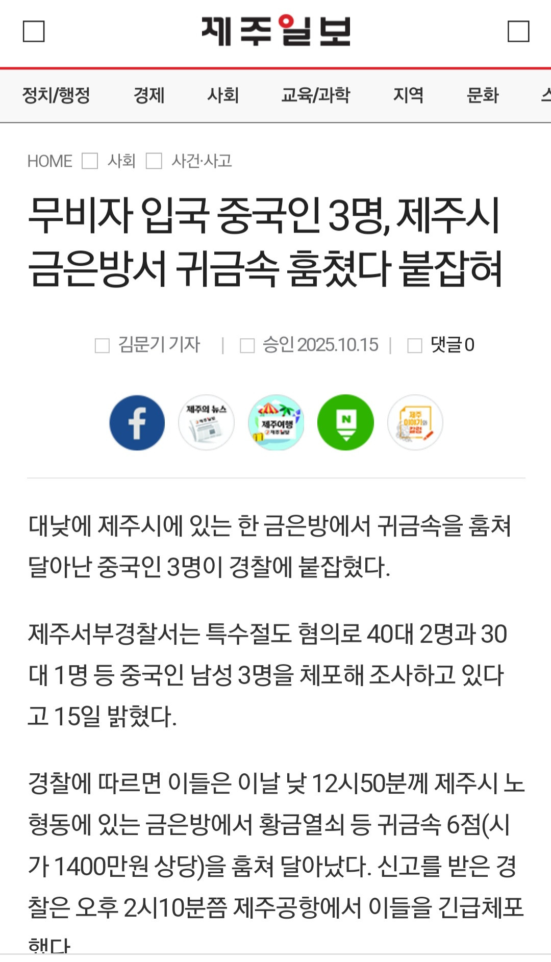 <속보> " 무비자 중국인 대낮에 금은방 털어 " ... ㄷㄷㄷ