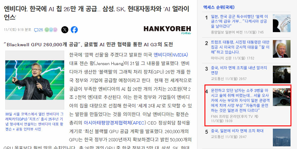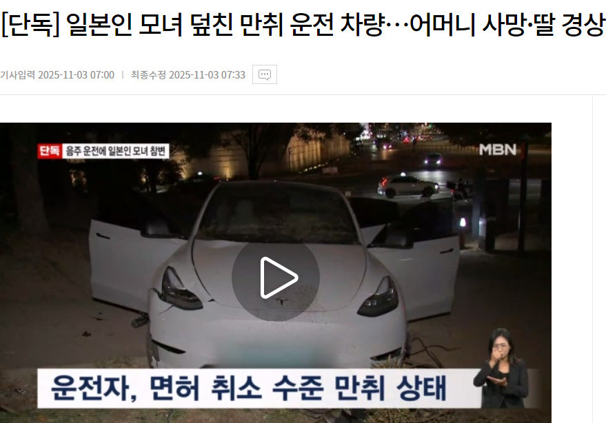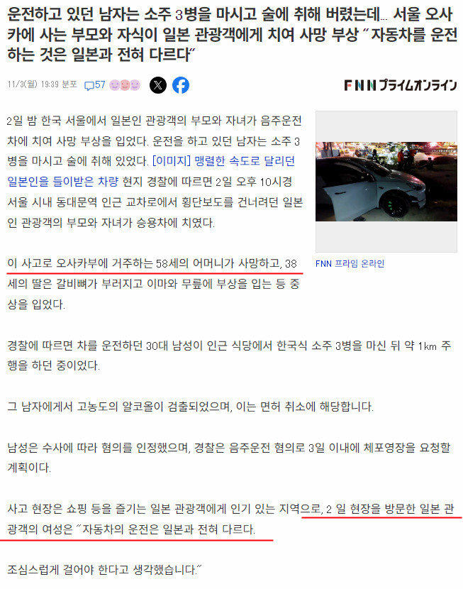 최근에 대만인, 캐나다인, 일본인 관광객 모두 음주운전으로 사망