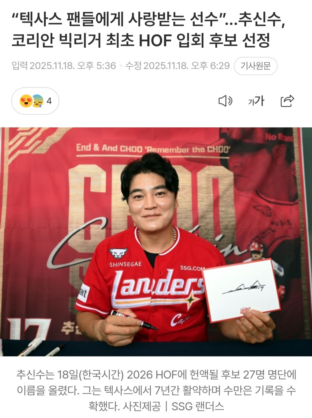 한국인 최초의 명예의 전당 입후보 ㄷㄷㄷ