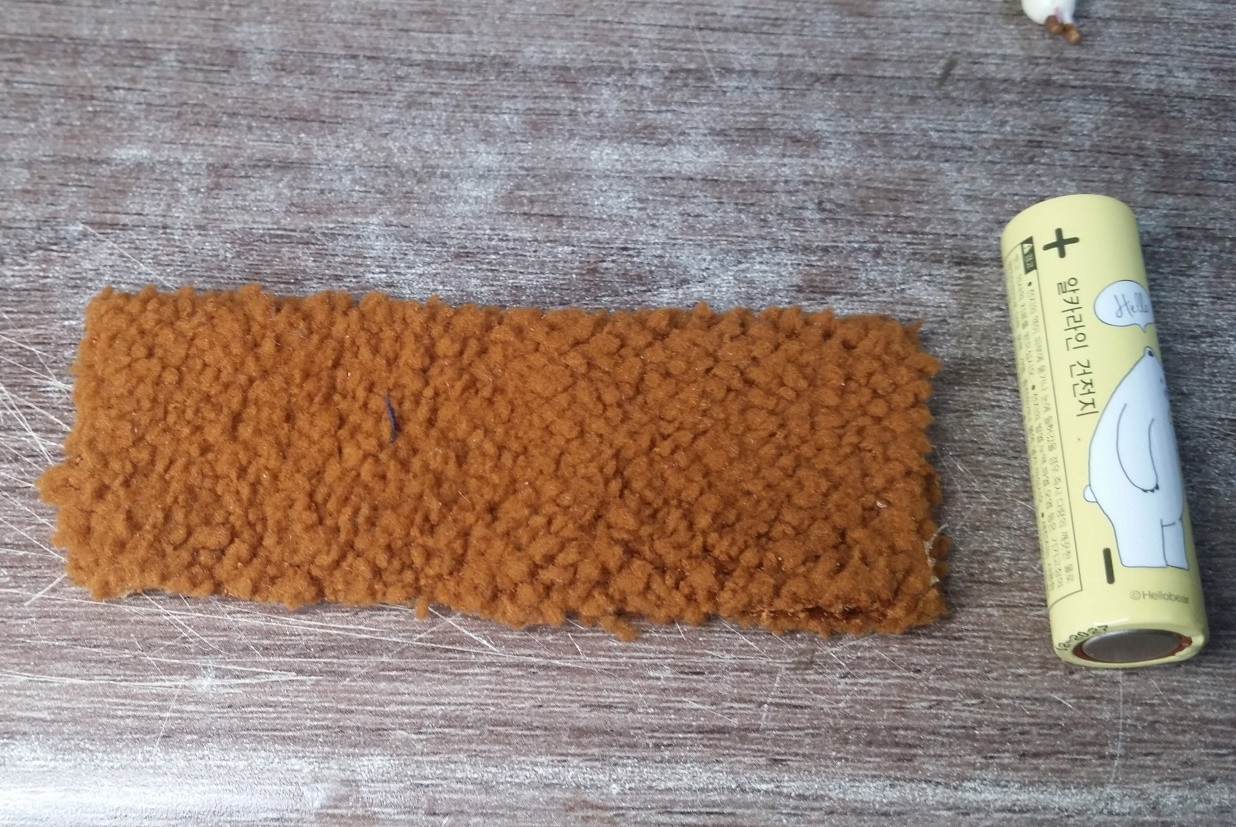 양모같은 천을 반으로 접어 붙힌다.