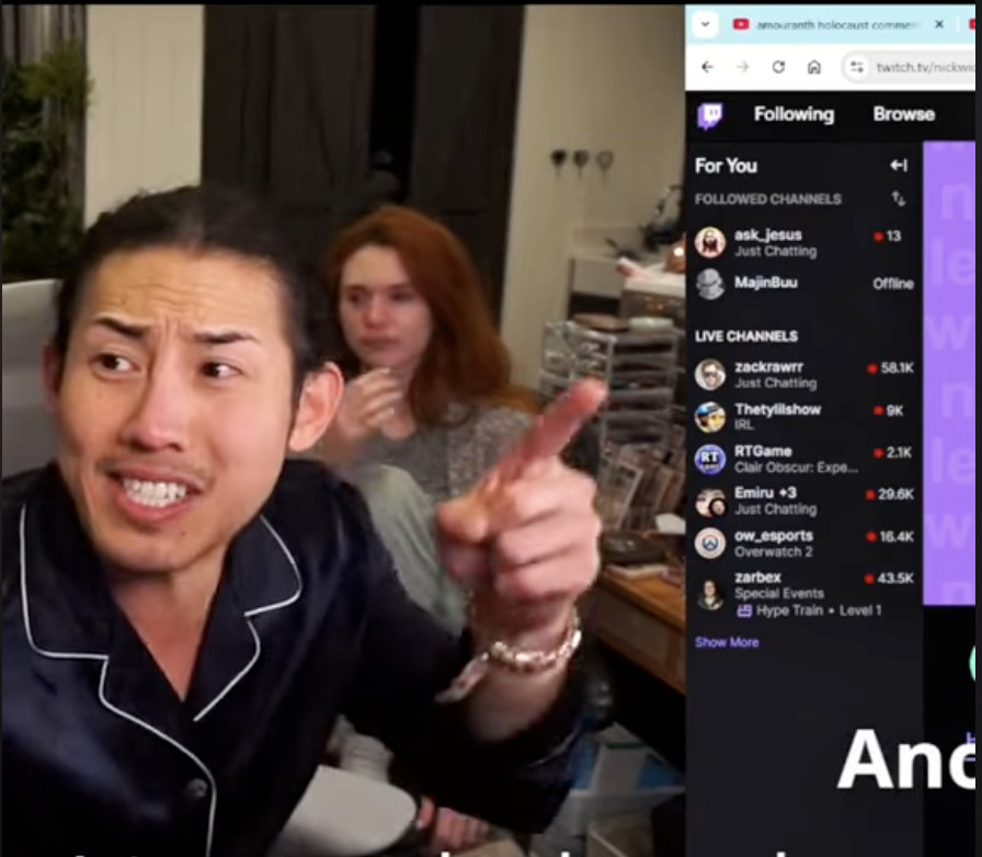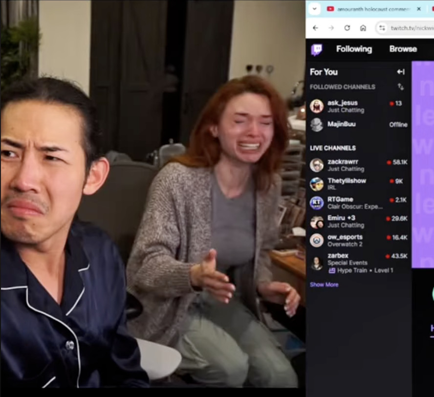 그러다가 어느날 쟤가 방송하는데 다시 남편욕을 하기 시작함.. 근데 난데없이 생쥐처럼 생긴 조폭? 비스무리한놈이 뒤에서 갑자기 달려와서 난입함... 그리고 미친년이 하는말은 다 구라라고 믿지말라고 하면서 고함지르기 시작함... 저 여자는 울고불고 난리났고. 쟤 생쥐 조폭이 알고보니 저 여자의 남편이었고 중국계라고 함(역시 짱깨). 저 짱깨놈도 알고보니 집 여러채있는 금수저...