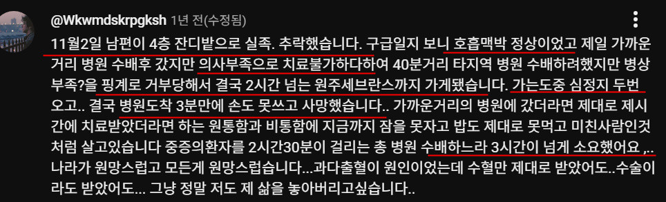 응급실 뺑뺑이 방지법 통과 됐음에도 반대함