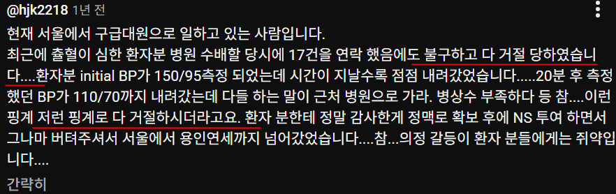 뺑뺑이는 이전부터 있었음,, 애초에 수술할 의사가 없고, 있다고 한들 꼴리는 대로 환자 받기 때문