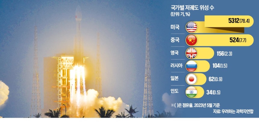 중국은 아직 미국과는 비교가 안 되는 수준이다. 미국 과학단체 ‘우려하는 과학자연합’이 2023년 5월 기준으로 작성한 통계에 따르면 미국의 저궤도 위성은 5312기고 이 중 스타링크 위성만 3996기였을 때 중국은 524기에 불과했다. 이후 스타링크가 공격적으로 시장을 확장한 걸 감안하면 지금은 격차가 더 벌어졌을 가능성이 크다.