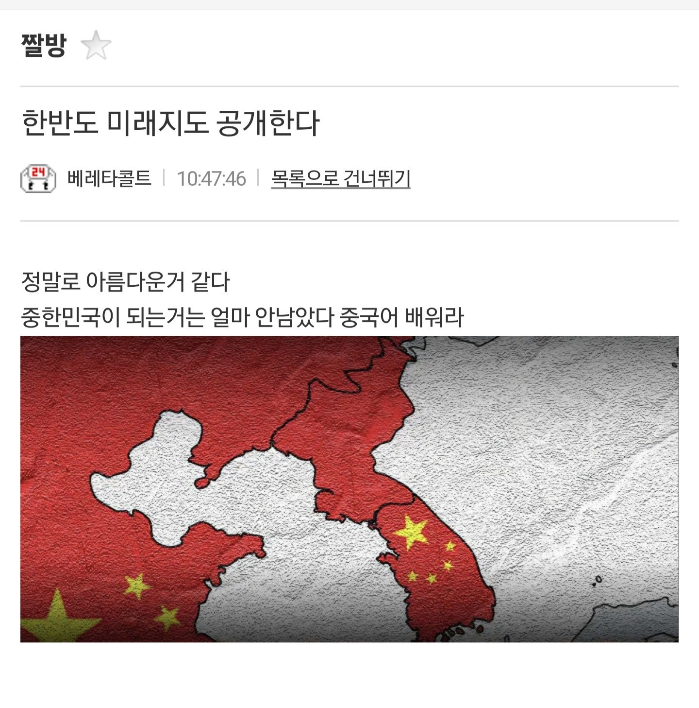 한국이 짱깨 속국이 되길 바라는 화짱조새끼