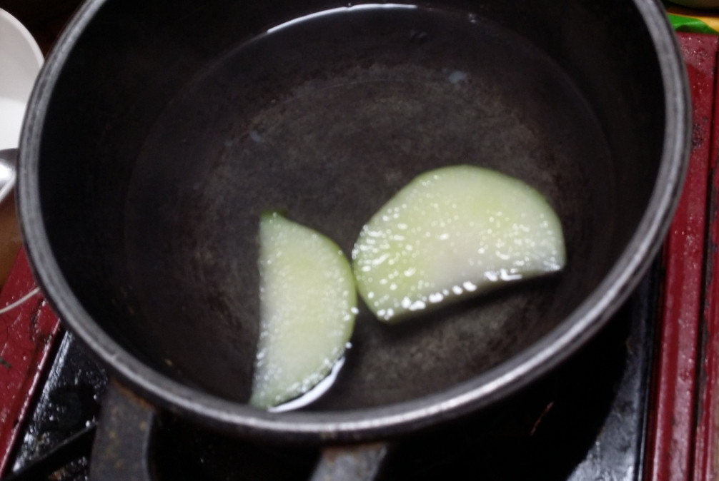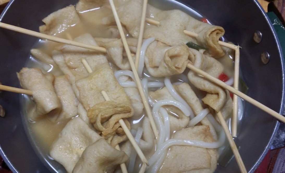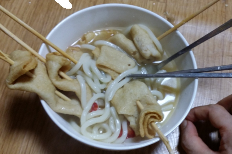 나무 꼬챙이가 냄비에 걸려서 오뎅이 물에 완전히 잠기지 않아서 나무꼬챙이 중간을 꺽어서 물에 넣었다.