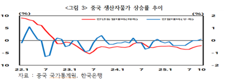 생산자 물가 상승률은 38개월 연속 마이너스 국면이 지속되고 있다. 제조업의 강점을 갖고 있는 중국 경제는 생산자 물가가 선진국처럼 소비자 물가를 3개월 정도 앞서가는 선행지표보다 경제 활력 지표로서의 의미가 더 크다. 3년 이상 PPI 상승률이 마이너스 국면이 지속되는 것은 제조업 활력이 떨어진다는 의미다.