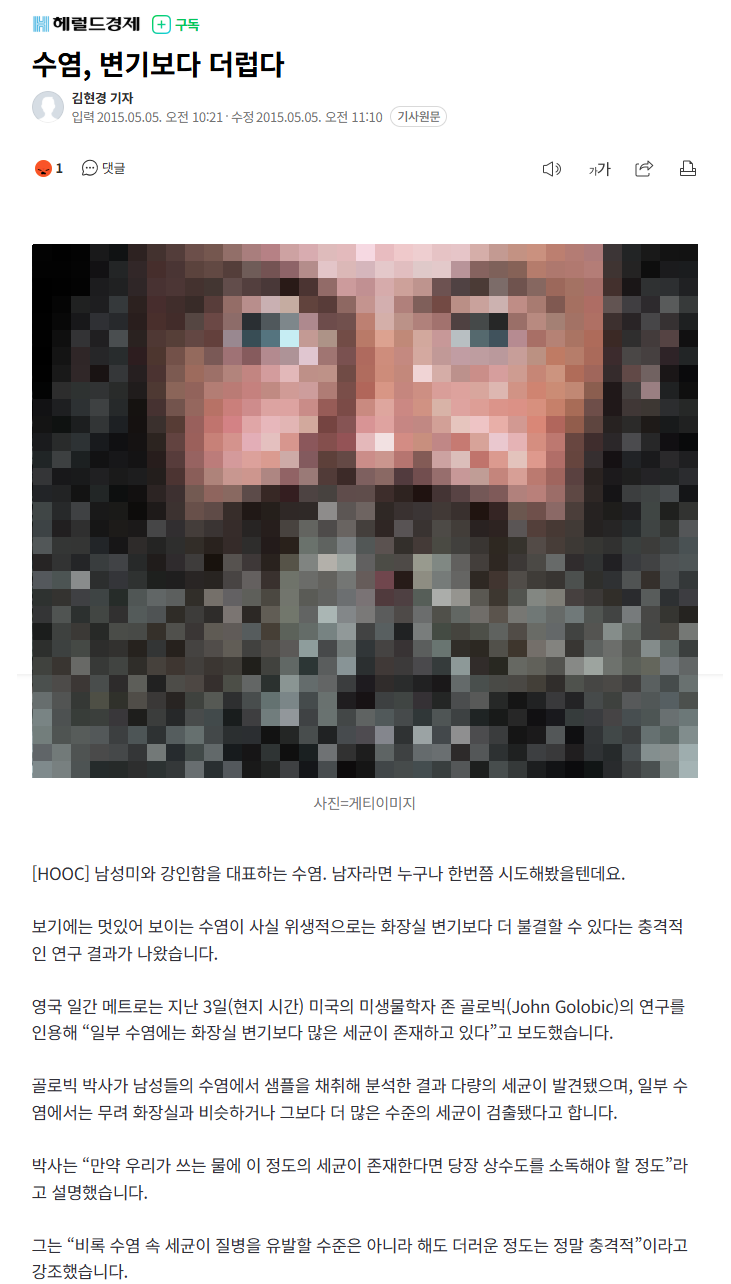 수염은 그야말로 온갖 세균 병균 고팡이 집합소가 되고만다 이기