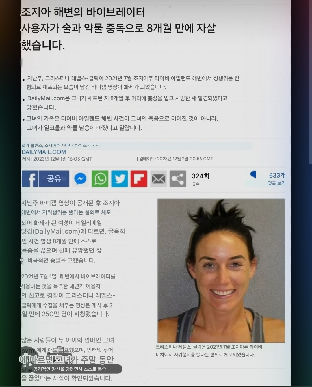 해변에서 자위하다 체포된 미국여자