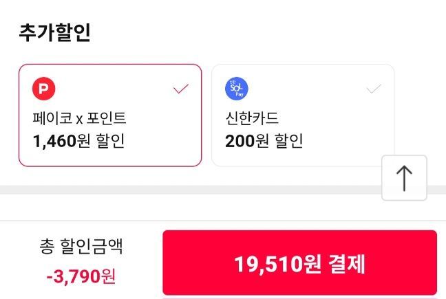 페이코로 결제하면 19510원인데 페이코기준으론 203원임