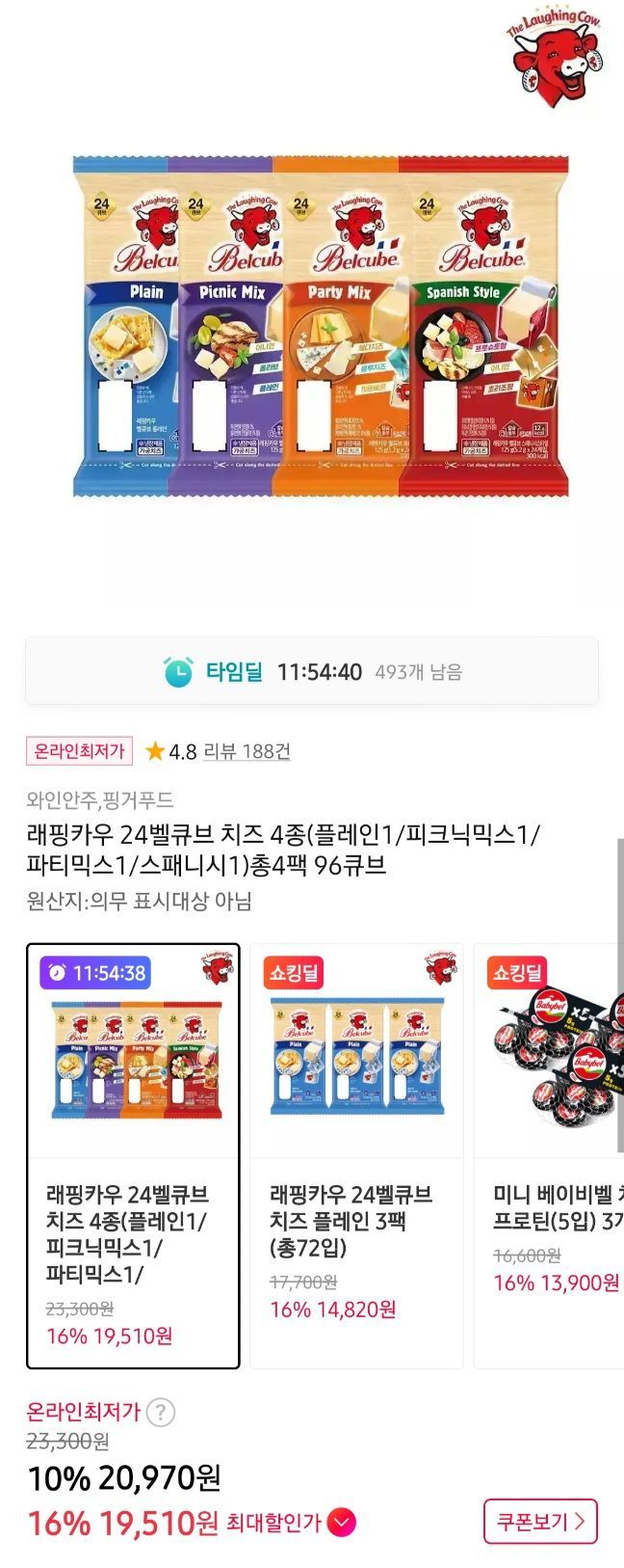 벨큐브 치즈 96개 기본할인으로 20970원이면 개당 218원 이거 가격 인상하고 한참동안은 250원아래 없었음