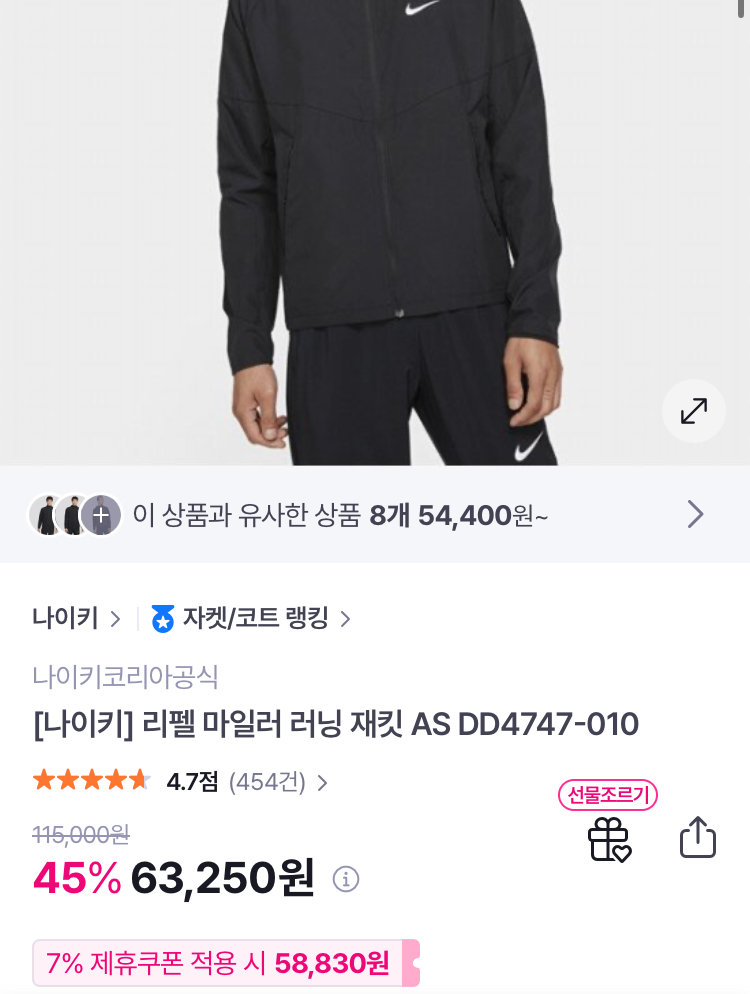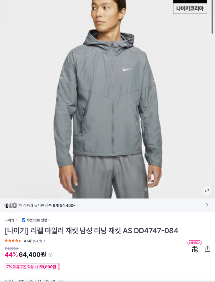 [GS샵]나이키 리펠 마일러 러닝 자켓(55,000원)