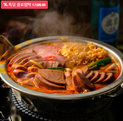 4,900원 국내산 햄소시지 푸짐 부대찌개600g(3개 이상 구매시 라면사리 증정)
