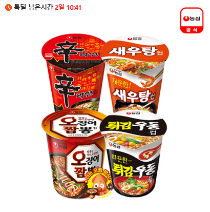 18,600원 농심 소컵 6입 4종 세트 (신라면컵6입+새우탕컵6입+튀김우동컵6입+오징어짬뽕컵6입)