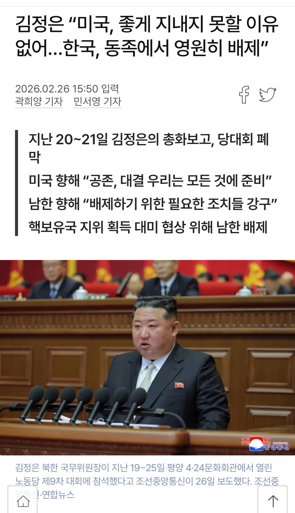 속보)김정은, 미국과 친하게 못지낼 이유 없다
