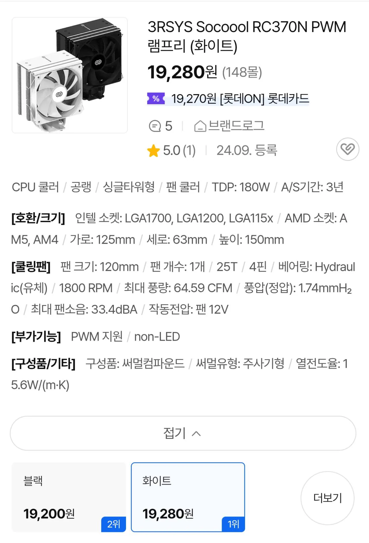 사제 싱글 타워 공냉 쿨러는 달아주는게 좋음.