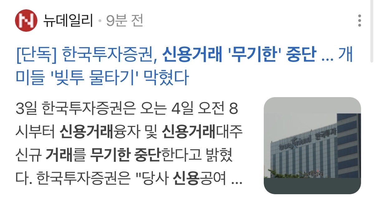 [속보] 금감원 지시로 인한 주식 신용거래 무기한 중단으로 마진콜 연쇄폭발중ㅋㅋㅋㅋㅋ