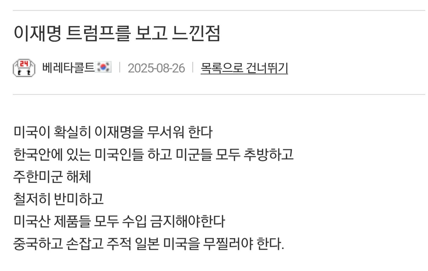 미국이 이재명을 무서워한다는 분탕새끼 ㅋㅋㅋ