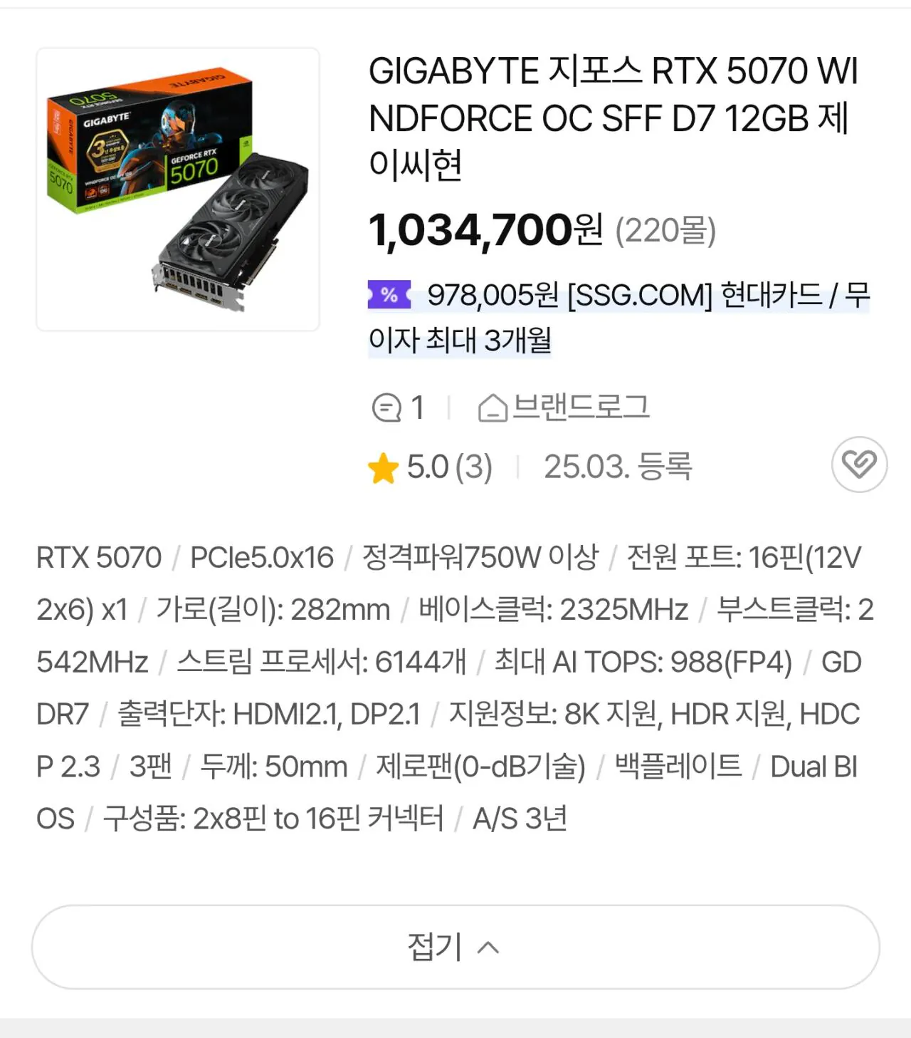 그래픽카드 : GIGABYTE RTX 5070 WINDFORCE