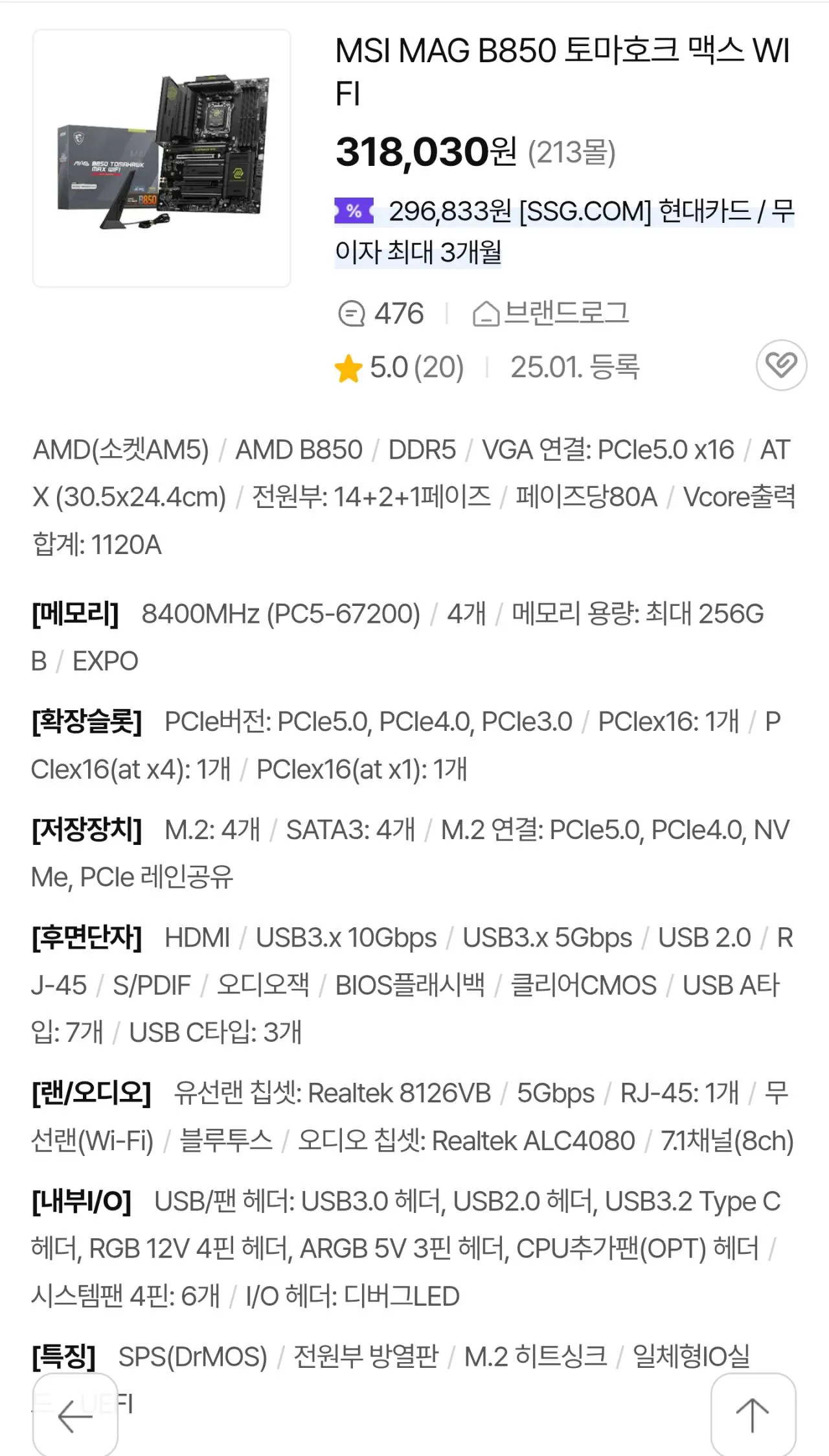 MSI MAG B850 토마호크 맥스 WIFI 변경하고 붉은사막 받아가는 것도 나쁘지 않은 선택임.