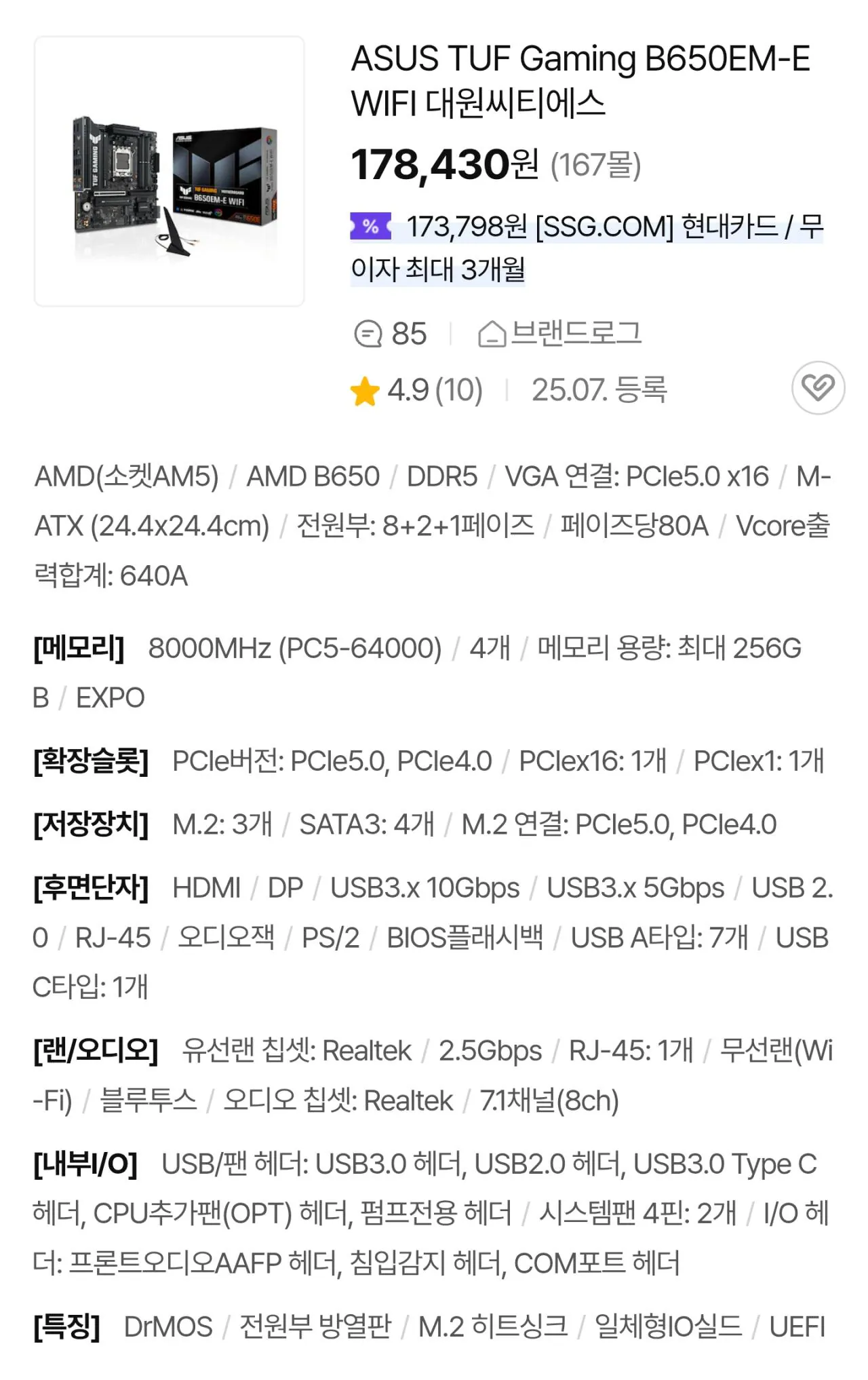 변경1)ASUS TUF Gaming B650EM-E WIFI 62,900원
