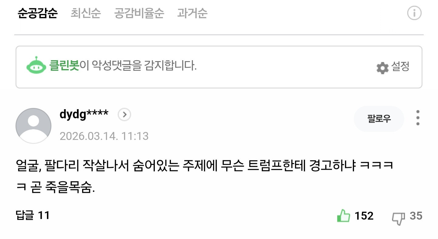 면상 좆창나서 공식석상에도 못나오는새끼가 경고 ㅇㅈㄹ