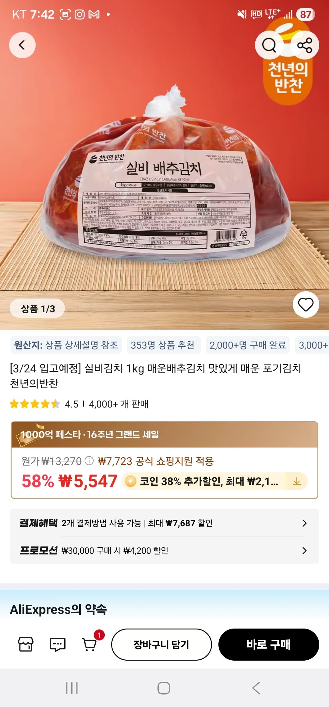 [알리익스프렛ㄷ]코인딜) 실비김치 1kg