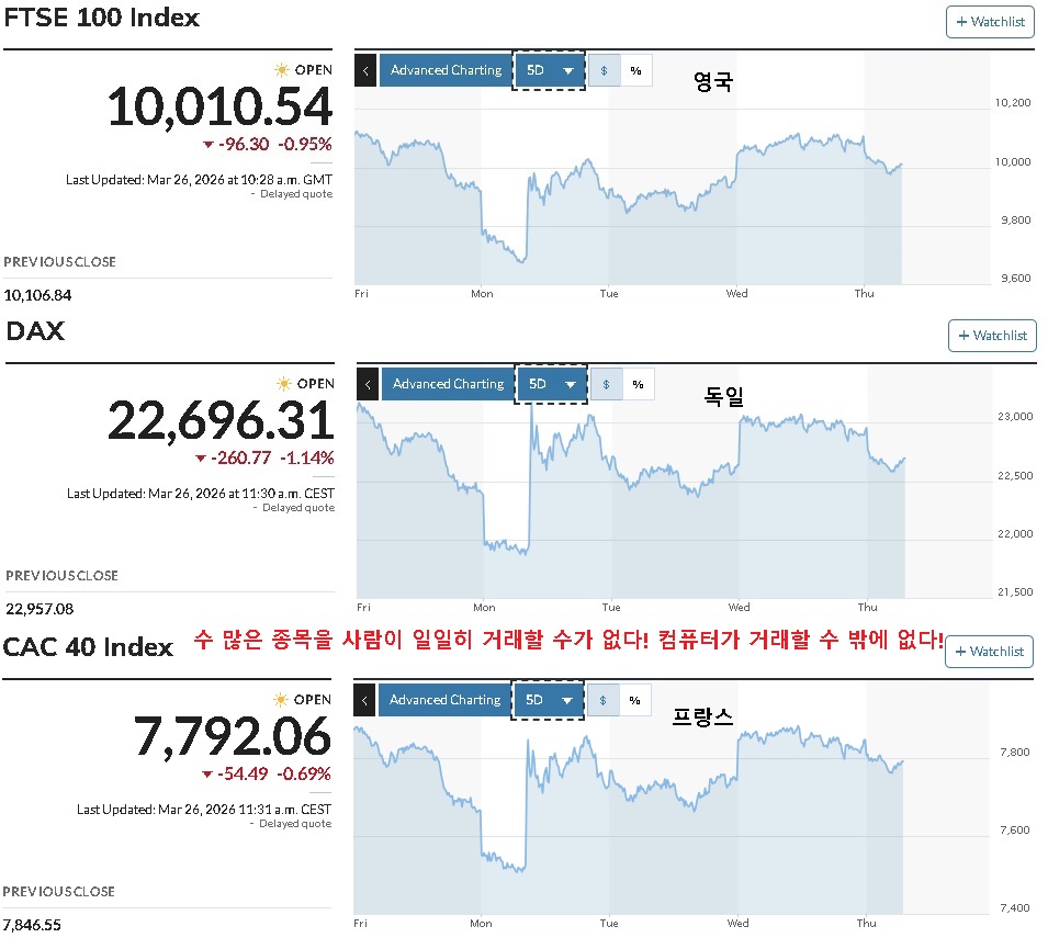 컴퓨터가 거래를 하기 때문에 유럽증시도 이런 흐름을 만드는 거다!