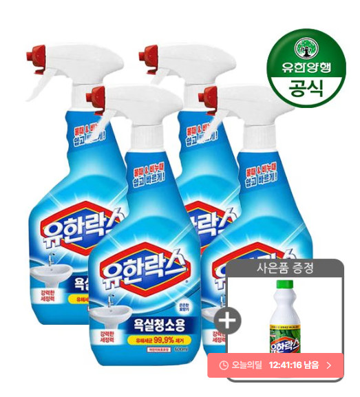 유한락스 NEW 욕실청소용 600ml 4개 + 후레쉬 500ml 증정