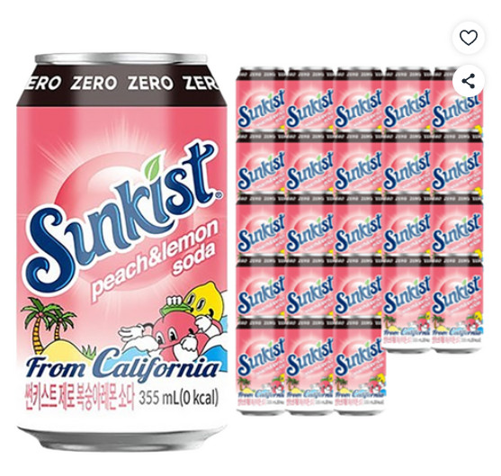 썬키스트 제로 복숭아레몬 소다, 355ml, 24개 69%