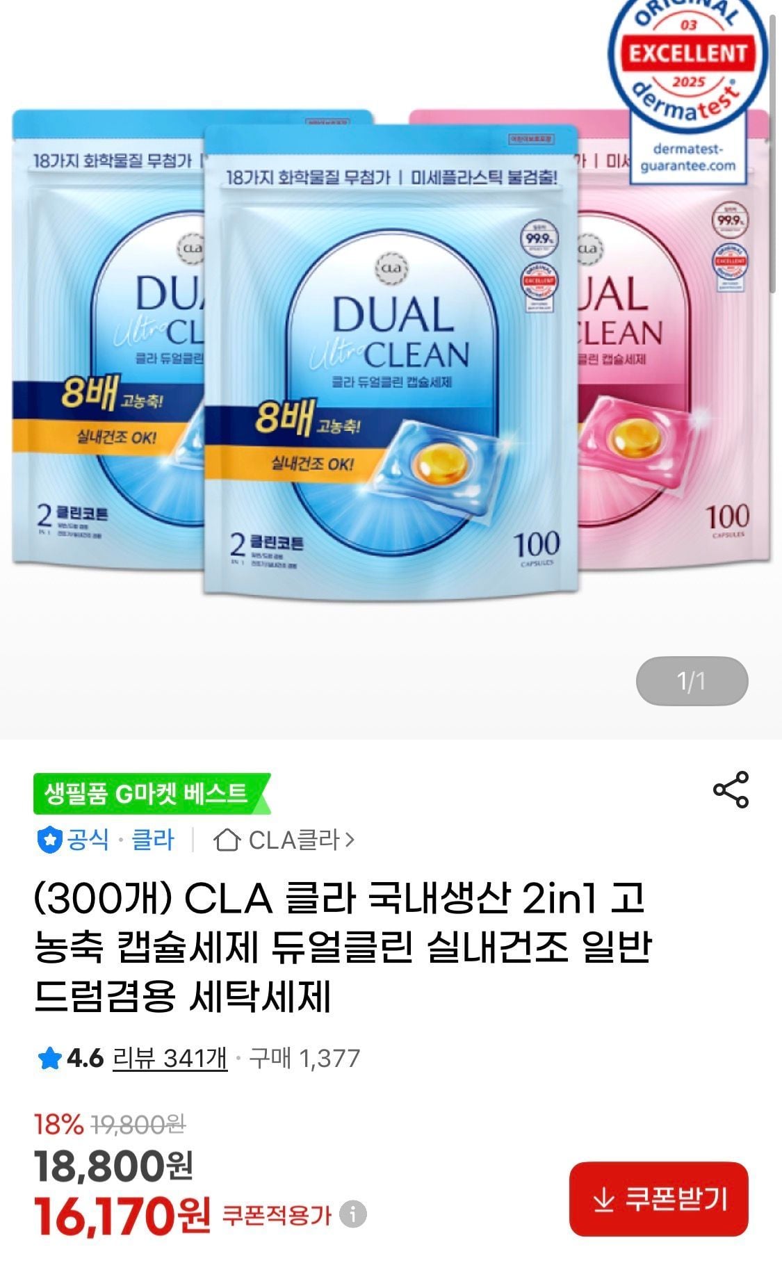 : CLA 2in1 고농축 캡슐세제 듀얼클린 300개