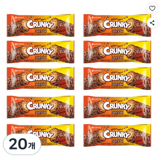 롯데웰푸드 크런키 초코바, 30g, 20개