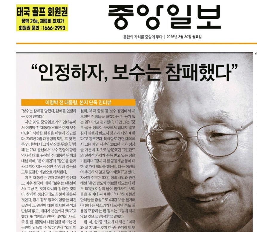 이명박 전 대통령이 퇴임 13년 만에 중앙일보와 인터뷰했다. 이명박은 대통령 퇴임을 앞둔 2013년 2월 4일 조선일보와 인터뷰한 뒤 언론과의 접촉을 피해왔다.