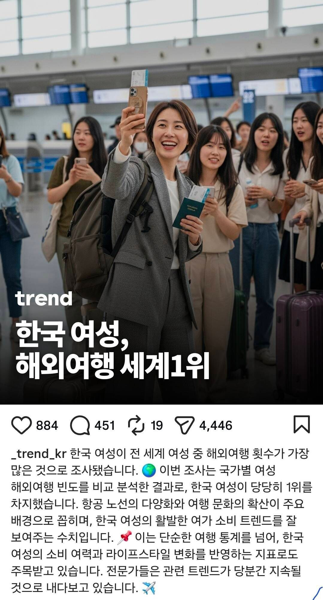 한국여성 해외여행 세계 1위라니 역시 큰 일은 한녀가 한다