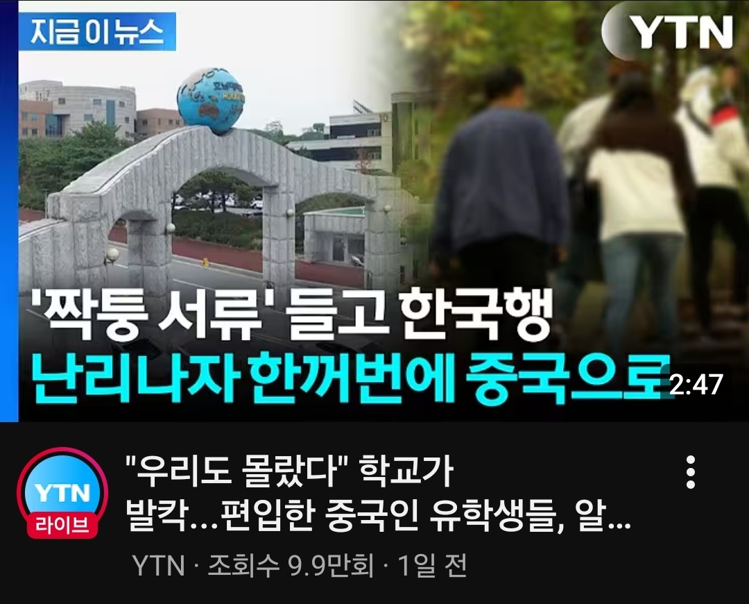 고졸학력의 짱깨 112마리가 호남대학교로 단체로 편입
