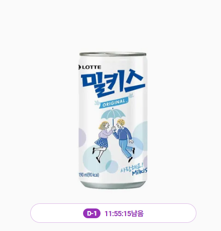 일반 밀키스 190ml 캔당 372원 => 최대 할인 혜택 네/카 7% 체크 최종가 나온다 이기!