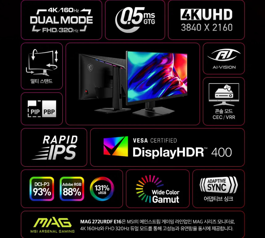 : MSI MAG 272URDF800 E16 듀얼모드 게이밍 모니터 4K