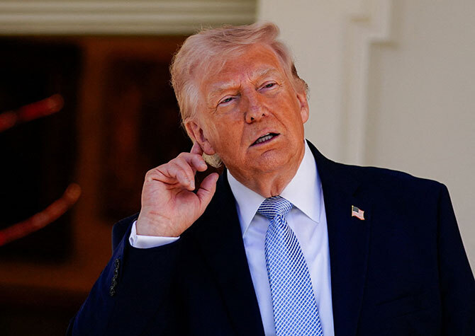 트럼프 대통령은 이어 "우리는 험지에 4만5천명의 (주한미군) 병력을 두고 있으며 핵무기를 많이 갖고 있는 김정은 바로 옆"이라고 했다.
