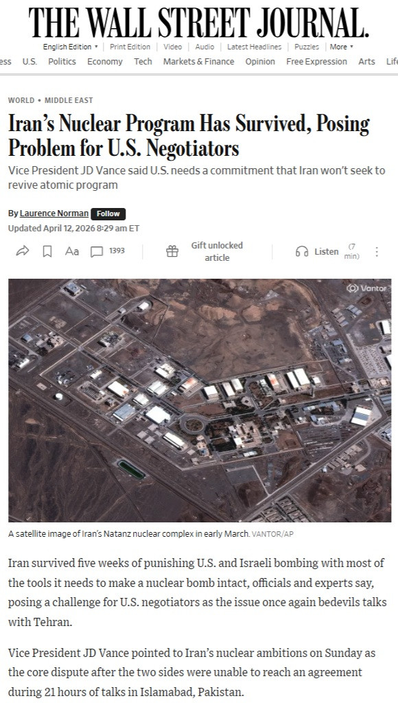 1. 이란, 핵개발 포기 못한다며 협상 결렬시킴