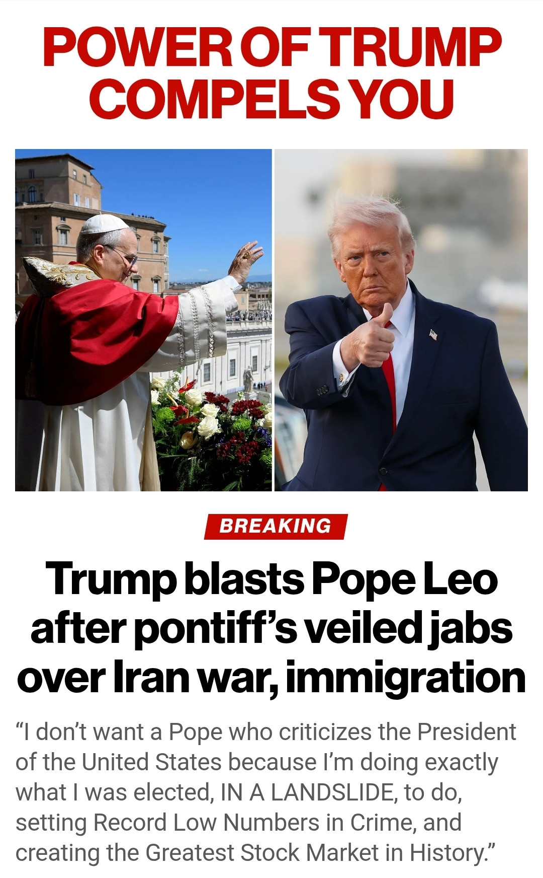 트럼프의 이란 전쟁 비판하는 좌빨 교황을 향해 트럼프 왈,