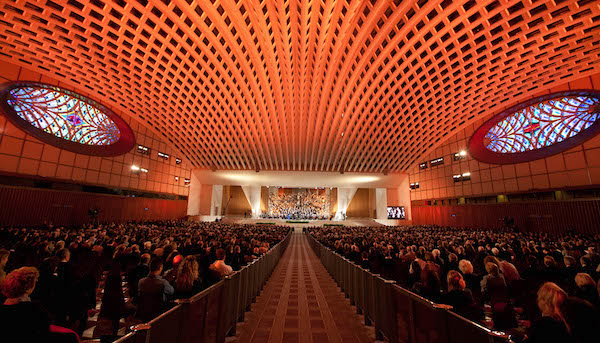 어느 각도에서 보더라도 디자인이 의도된 것임을 알 수 있습니다. 이는 치밀하게 계산된 선택입니다. 이곳은 바오로 6세 알현실 이며, 설계자들은 자신들이 무엇을 형상화했는지 정확히 알고 있었습니다.