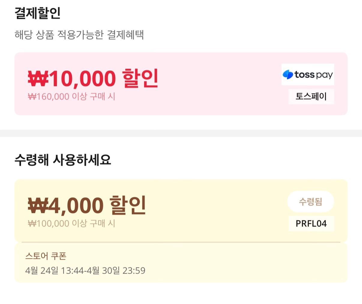 PRFL04 쿠폰코드 입력하면 4천원 추가 할인됨